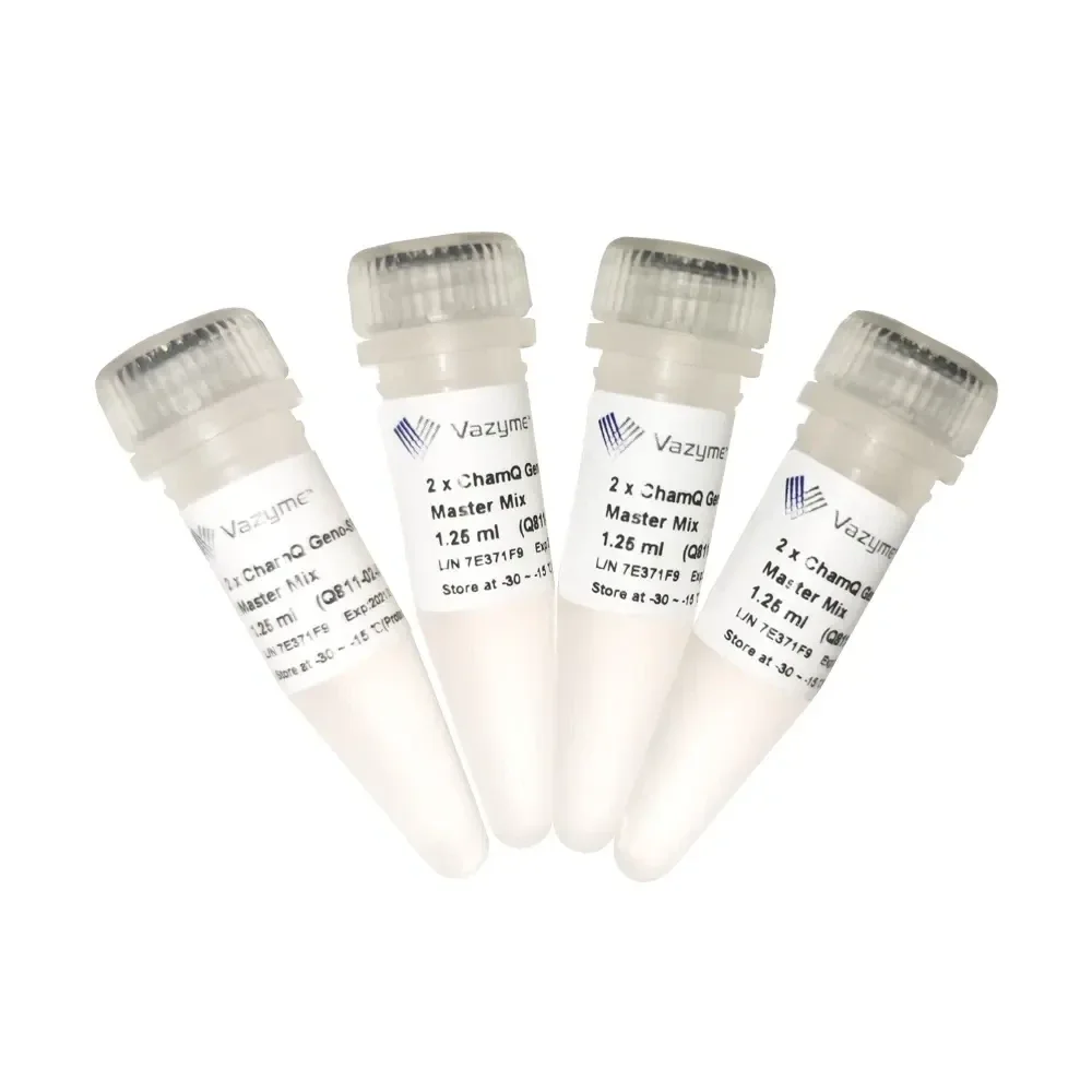 ChamQ Geno-SNP Probe Master Mix is specially designed for single nucleotide polymorphism (SNP) typing by probe-based qPCR, which can be performed simply by only adding additional primers, Taqman MGB probes and templates. This master mix uses Champagne Taq DNA Polymerase as the core enzyme, with carefully optimized Buffer, the success rate of typing on low-concentration templates and complex templates has been increased. This product contains a unique ROX Passive Reference Dye that is suitable for all qPCR instruments. The concentration of ROX does not need to be adjusted on different instruments.